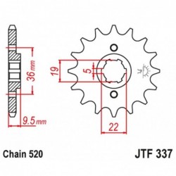 JT PRIEKINĖ ŽVAIGŽDUTĖ 337 12 HONDA TRX 250/300, CR 250 82-85, CR500 84-85 (33712JT)(GR. 520) 16,37 € Pridėti į krepšelį